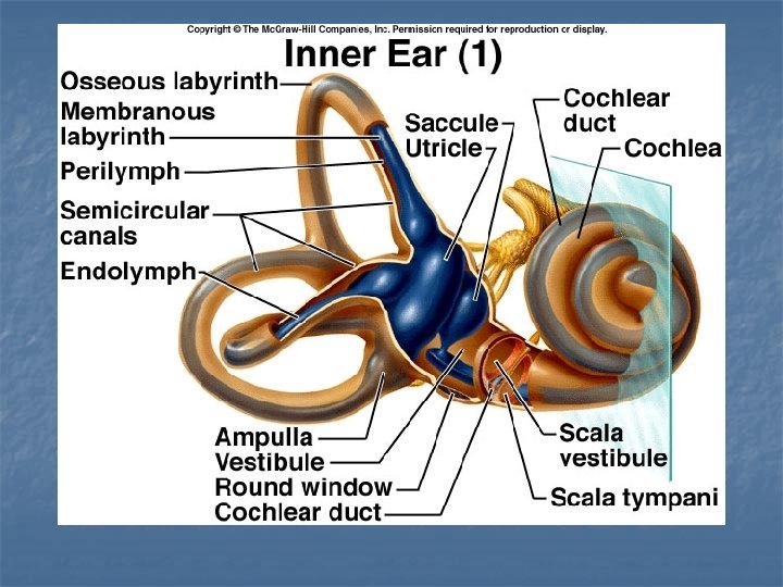 INNER EAR : n Cochlea – hearing n Vestibule – static equilibrium n Semicircular canals – dynamic equilibrium