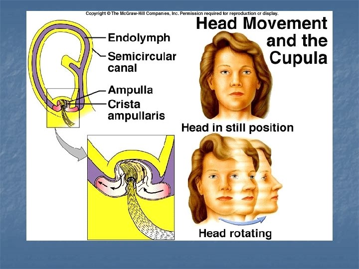 Dynamic Equilibrium Semicircular canals In ampulla is the crista ampullaris – contains hair cells and supporting cells covered by a gelatinous mass called the cupula. Neurological connections between eyes and semicircular canals – for tracking Nystagmus