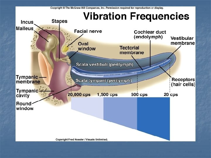 OHC vs. IHC Function n n Vestibulocochlear nerve – cranial nerve VIII Audible range: 20 -- 20, 000 hertz Ossicles amplify sound 22 X Some nerve fibers cross over to opposite side of brain