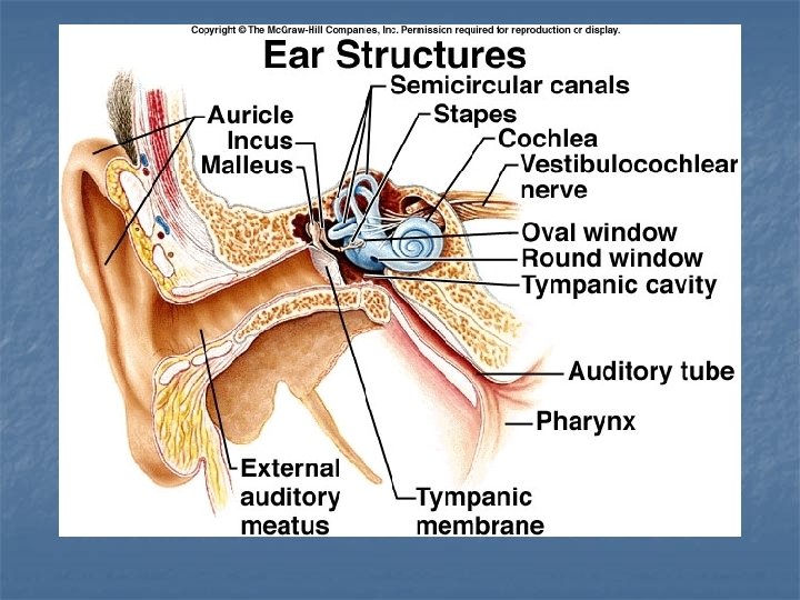 OUTER EAR n n Consists of the auricle and EAM Skin-lined apparatus Approximately 2. 5 cm in length Ends at tympanic membrane