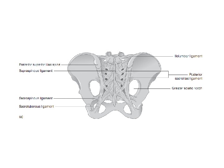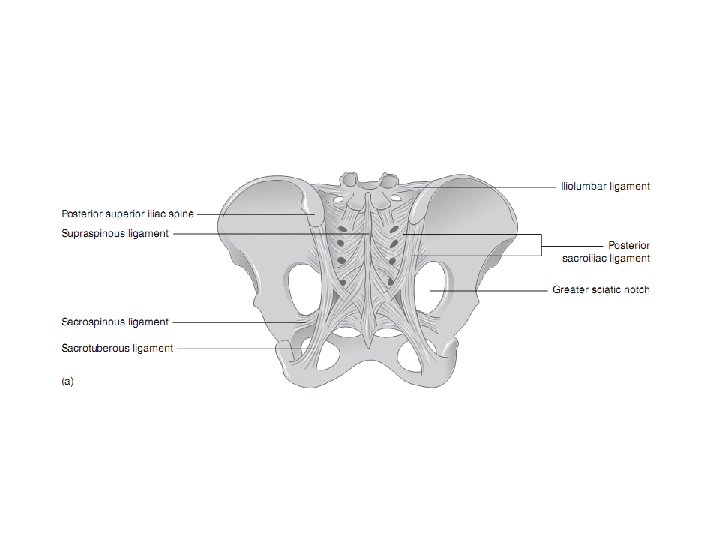 • The upper sacrum is stabilized by the iliolumbar ligaments via its attachment to the fourth and fifth lumbar vertebra and the • Lower sacrum by the sacrospinous and sacrotuberous ligaments attachments to the posterior iliac spines and ischial tuberosities