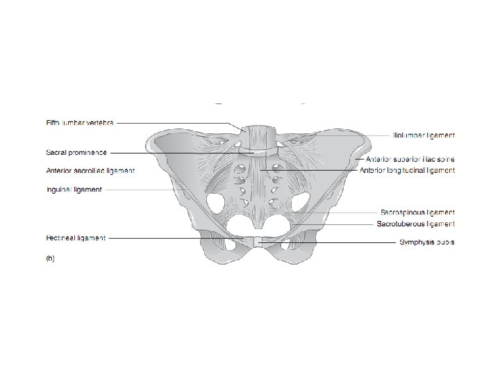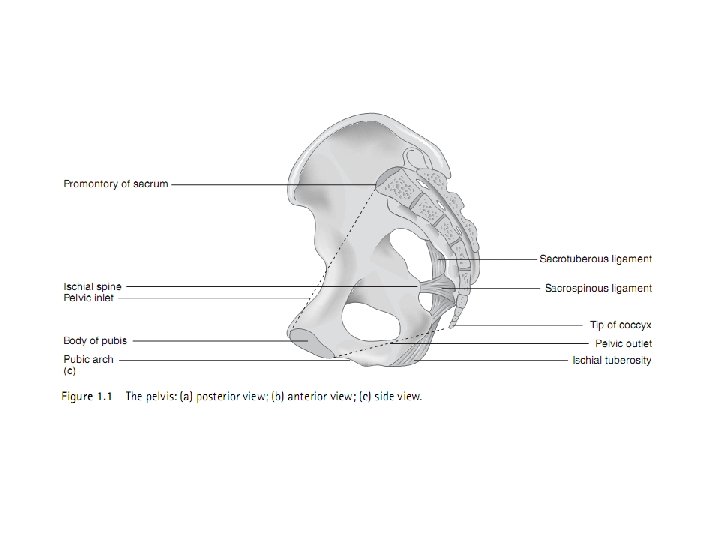 Difficulties in Child Birth • Difficulties can be experienced in childbirth from such adverse features as 1. Protuberant ischial spines, 2. A heart-shaped inlet produced by an invasive sacral prominence, or 3. An asymmetrical pelvis (e. g. as a result of rickets or trauma). 4. It is also possible for the inlet or outlet to be too small to allow the fetal head to pass through 5. It has recently been demonstrated that a narrow suprapubic arch is associated with a consequential prolonged labor and postpartum anal incontinence