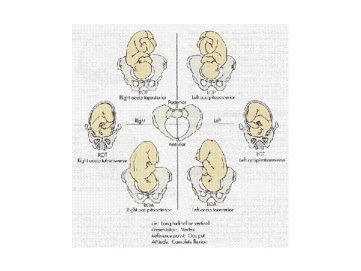 • The fetal skull is longest in its anteroposterior dimension. • Most commonly in labor the head enters the inlet of the maternal pelvis transversely placed (i. e. long axis to long axis), rotates in mid-cavity and leaves by the outlet with its longest dimension lying anteroposteriorly.