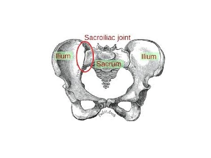 sacrum • The wedge-shaped sacrum is virtually suspended between the innominate by the exceptionally tough interosseous and posterior sacroiliac ligaments, • However, the ventral sacroiliac ligament is less substantial and is thought to tear during childbirth