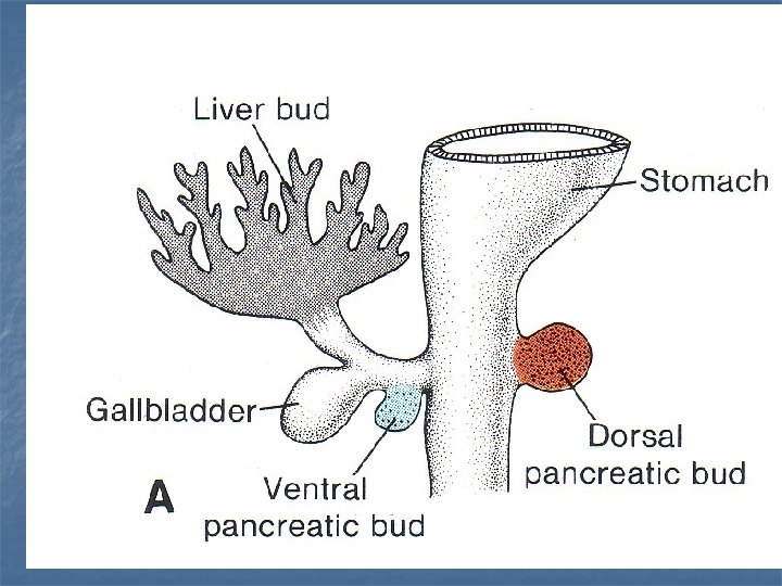 Development of Pancreas n n n It is formed from 2 endodermal buds: ventral & dorsal. Ventral pancreatic bud: It arises from the proximal part of hepatic duct. It migrates together with hepatic duct from ventral wall of foregut to its dorsal wall to lie below dorsal bud. It forms lower part of head of pancreas and uncinate process. Dorsal pancreatic bud: It arises from dorsal aspect of foregut just cranial to hepatic bud. It grows dorsally through mesoduodenum to form upper part of head of pancreas, body and tail.