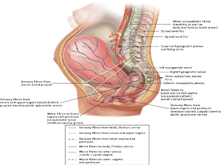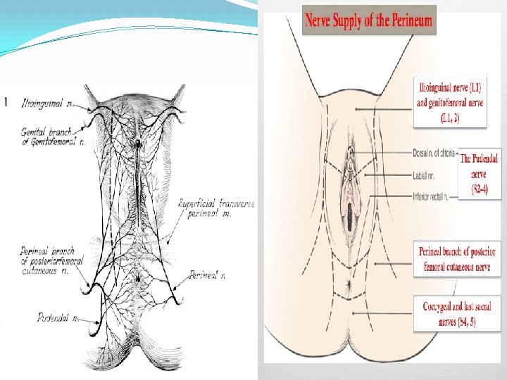 Nerve supply of Vulva �Anterosuperior part-Ilioinguinal and genitofemoral nerve (L 1 and L 2) �Posteroinferior part- Post. Cutaneous nerve of thigh (S 234) �In b/w- pudendal nerve- labial and perineal branches (S 234)