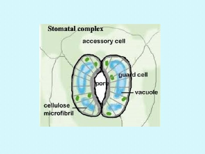 STOMATAL APPARATUS Stomata aperture, guard cells and surrounding epidermal cells (subsidiary cells) together constitute the stomatal apparatus.
