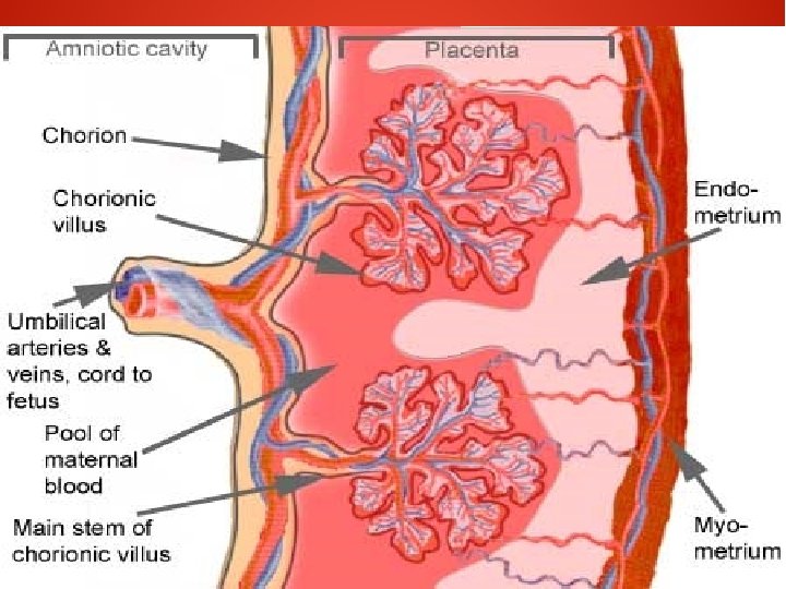 Placental membrane ● ● Total area-4 to 14 sq m Similar to absorbtive area in adult git In later part of pregnancy the membrane thickness reduces from 0. 025 mm to 0. 002 mm Is classified as haemochorial