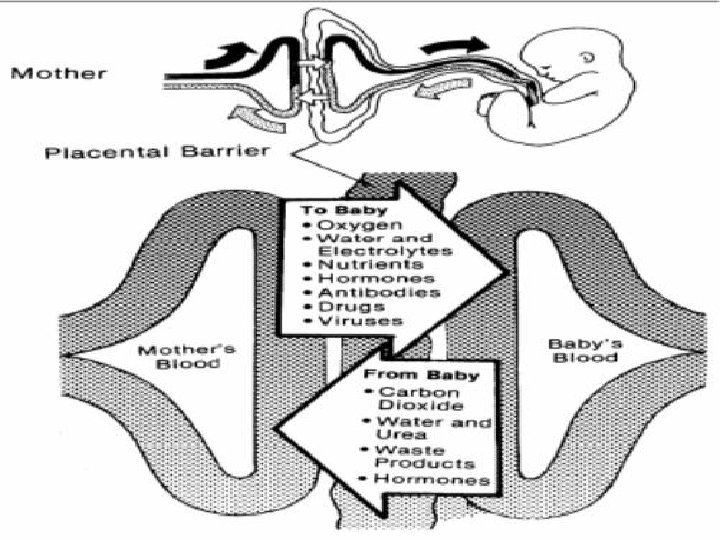 PLACENTAL BARRIER ● ● Inspite of close proximity , there is no mixing of the maternal and fetal blood. They are separated by placental membranes or barrier.