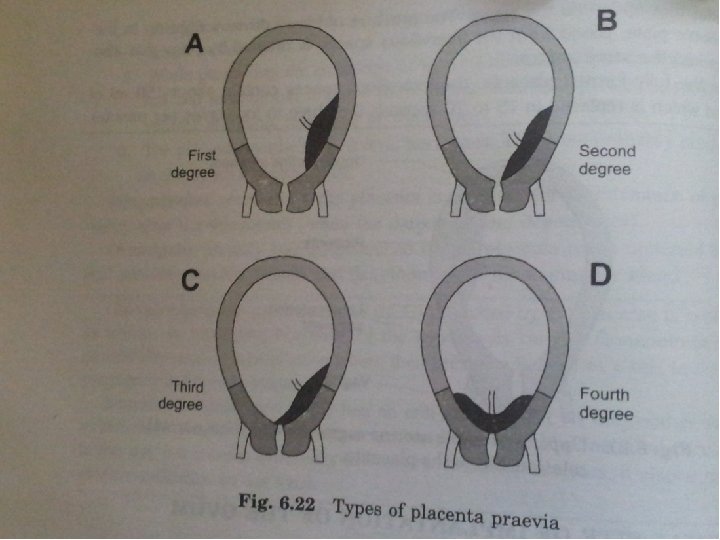 Placenta praevia ● ● ● ● Normal sites of implantation of ovum Upper uterine segment Abnormal sites of implantation of ovum Types of placenta praevia First degree Second degree Third degree Fourth degree