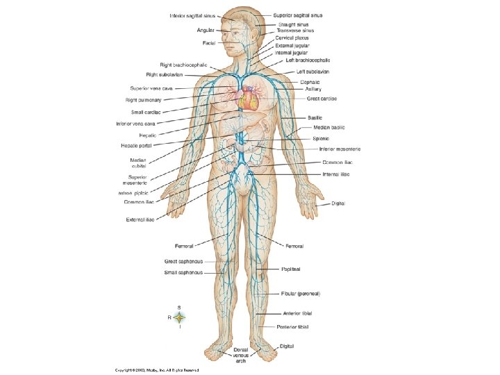 Systemic Veins • • • Superior vena cava Inferior vena cava External jugular Internal jugular Brachiocephalic (L and R) • Subclavian (L and R) • Cephalic • axillary • • • Basilic Median basilic Median cubital Common iliac External iliac Femoral Popliteal Great saphenous Small saphenous
