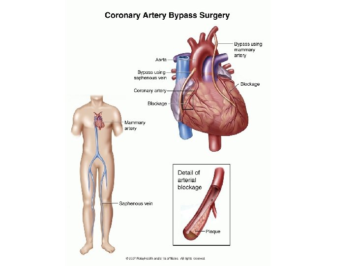 Myocardium Disorders • Myocardial Infarction – – “Heart Attack” Coronary thrombosis: clot Coronary embolism: mobilized clot Occlude coronary artery heart tissue deprived of oxygen cell death – S/S: • Angina pectoris – severe chest pain resulting from inadequate oxygen to myocardium – Treatment: Coronary Bypass Surgery • Veins are harvested from other areas of the body and used to bypass obstructions