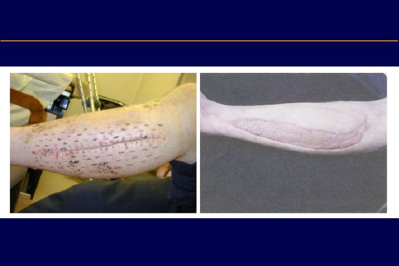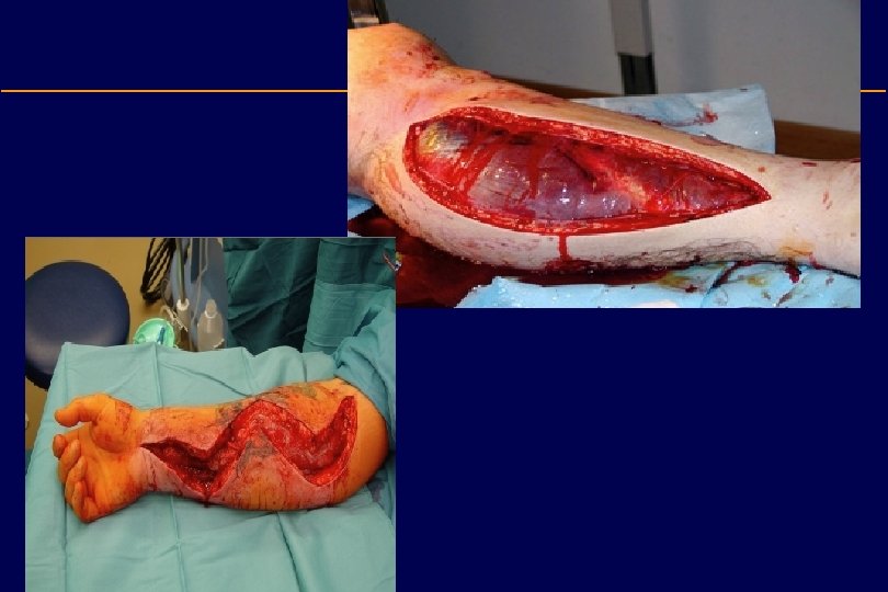 Compartment Syndrome • Sings and symptoms the 6 “P’s”: » » » • Pain? Paresthesias? Paralysis? Pallor? Pulselessness? poikilothermia (cool limb)? Treatment – Emergency fasciotomy » – – Decreases pressure by opening “closed space” Often, will leave skin open because of severe swelling of muscles Delayed primary closure or secondary clousre