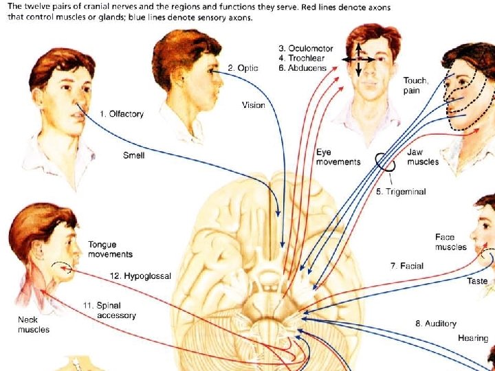 Peripheral Nervous System �Most of the nerves of the peripheral nervous system project from the spinal cord � 12 pairs of cranial nerves project form the brain �Purely sensory nerves – I olfactory (smell), II optic (vision), VIII vestibulocochlear (balance and hearing) �Others are either purely motor or mixtures of motor and sensory fibers