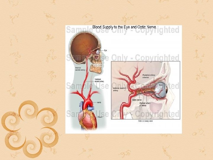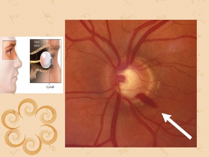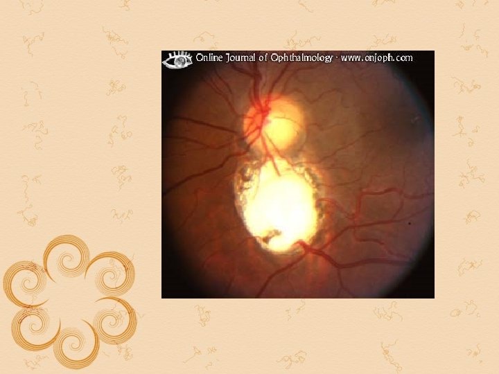 Papillitis papilloedema 1. 2. 3. 1. 2. 4. 5. 6. 7. 8. Unilateral Sudden diminished of vision Sustained papillary reaction marcus gunn pupil Media might be hazy due to exudation into vitreous Disc swelling rarely more than 2 -3 d Field defect central or centrocaecal scotoma between the fixation and blined spot especially for red and green x-ray skull : normal condition temporary and recovers in afew weeks 3. 4. 5. 6. 7. 8. Bilateral For long central vision is unilateral Pupil round and reacts briskly to light Media clear May be as high as 6 d Enlarged blined spot later contraction of the peripheral field Shows silver beaten appearance erosion of posterior clinoid process and dorsum sellae Condition progressively deteriorates and ends in blindness unless treated in time