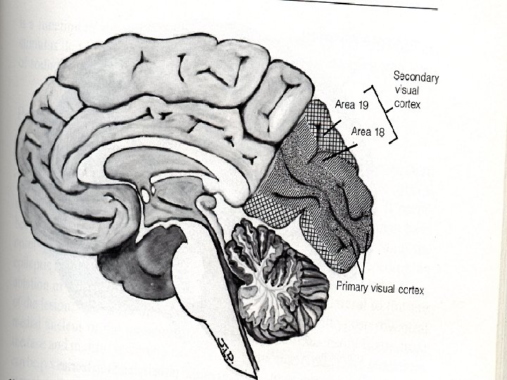 Primary Visual Cortex (V 1) • Located along calcarine sulcus • M and P pathways continue in different paths as they reach layer 4 of V 1 – M pathway to layer 4 Ca – P pathway to layer 4 Cb and layer 4 A • Organized into ocular dominance zones – Monocular cells in layer 4 C – Binocular driven cells outside of layer 4 C