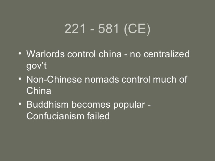 403 BC…Zhou dynasty began to collapse due to civil war. Warfare led To many new inventions-