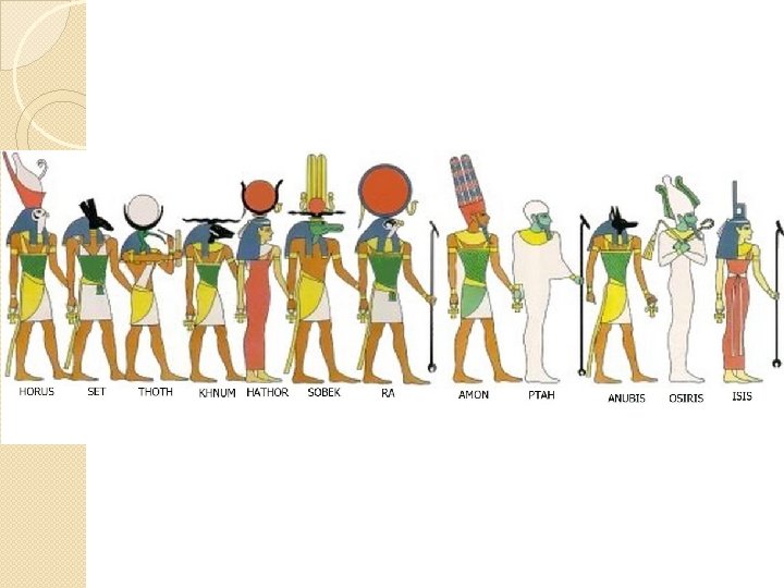 Theme 1: Role of Gods ◦ Believed that the universe and all events that occurred within in were governed by the will of the Gods ◦ Gods embodied natural and abstract concepts (justice, kinship, protection, truth) ◦ To portray multiple powers, Egyptians imaged them in many different forms – often combining animal and human shapes ◦ Example Thoth, God of Writing