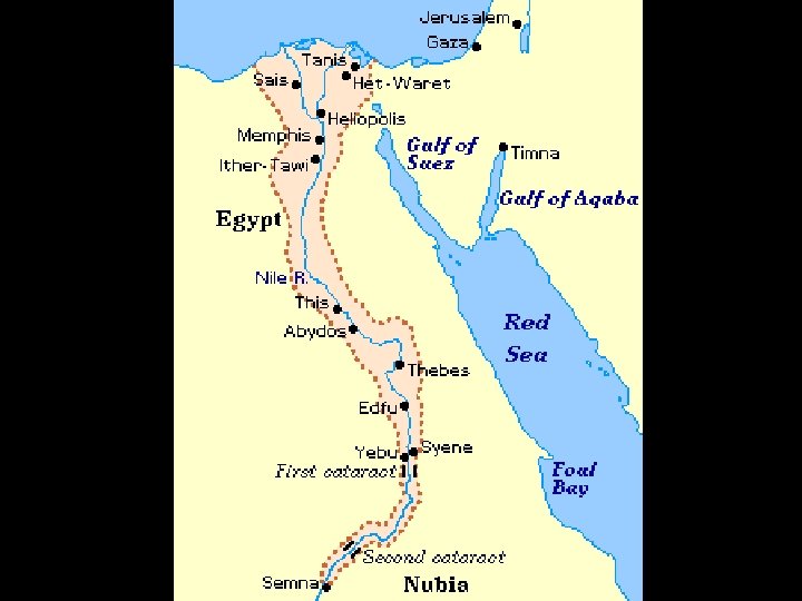 Geography of the Nile Region • Nile River – – Flows north Originates in the highlands of Central Africa Ends in the Mediterranean Sea Longest river in the world at 4, 160 miles (probably) • Floods – – – Until recently, flooded annually in July Floods predictable Added moisture to the soil Deposited silt, replenishing the soil with nutrients Caused delta to form at the mouth of the river