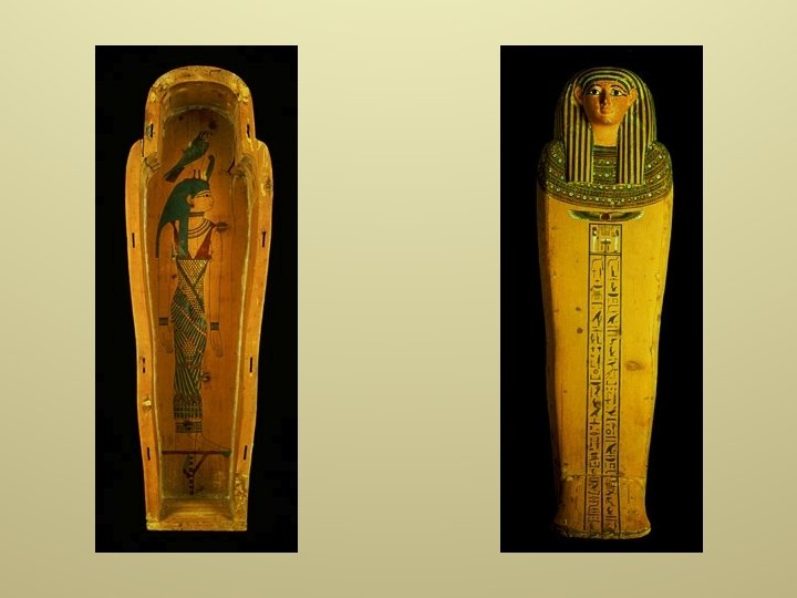 • Later, ancient Egyptians began to bury the dead in coffins to protect from wild animals in the desert. However, they soon realized that those bodies would decay if they were not exposed to the dry, hot sand of the desert. • Over many centuries, the ancient Egyptians developed a method of preserving bodies so they would remain lifelike.