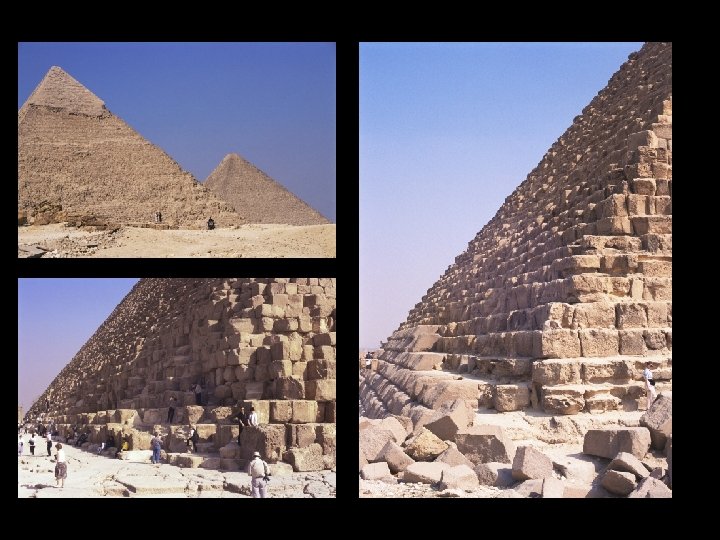 Great Pyramids Gizeh, Egypt Pyramids of Menkaure, ca. 3, 000 -2, 920 B. C. E. ; Khafre, ca. 2520 -2494 B. C. E. ; Khufu ca. 2551 -2528 B. C. E. limestone largest (Khufu) approximately 450 ft. high