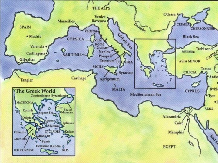 Geography • mountain ranges separated the small, independent Greek communities • caused them to develop different ways of life