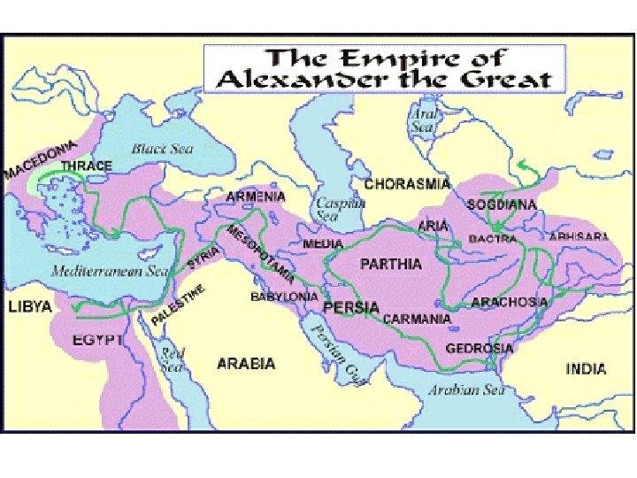 Alexander • Takes the thrown after Phillips murder at age 20 • Attempts to live his fathers dream and take over the Persian Empire • He does this and keeps going all the way through modern day India • Dies suddenly and does not name a successor