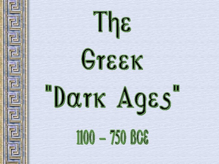 • Ca 1200 B. C. the Dorians invaded. They were less advanced than the Mycenaeans. Economy collapsed, trade halted and Greeks temporarily lost the art of writing. No records for 400 years.