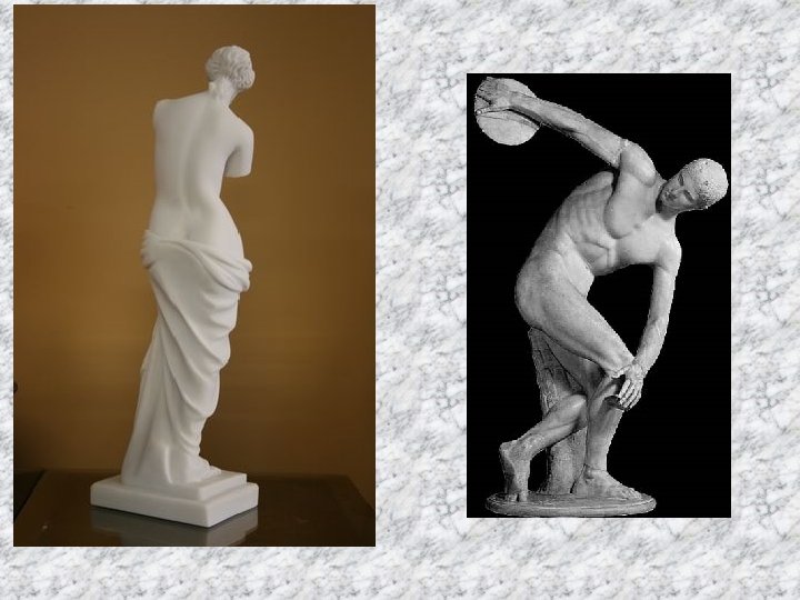 Sculpture • 3 time periods in Greek sculpture • Archaic, Classical and Hellenistic • Greeks had a large supply of marble for sculptures