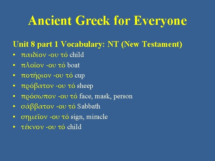 Ancient Greek for Everyone Unit 8 part 2 Vocabulary: NT (New Testament) • μαθητής -οῦ ὁ disciple • προφητής -οῦ ὁ prophet