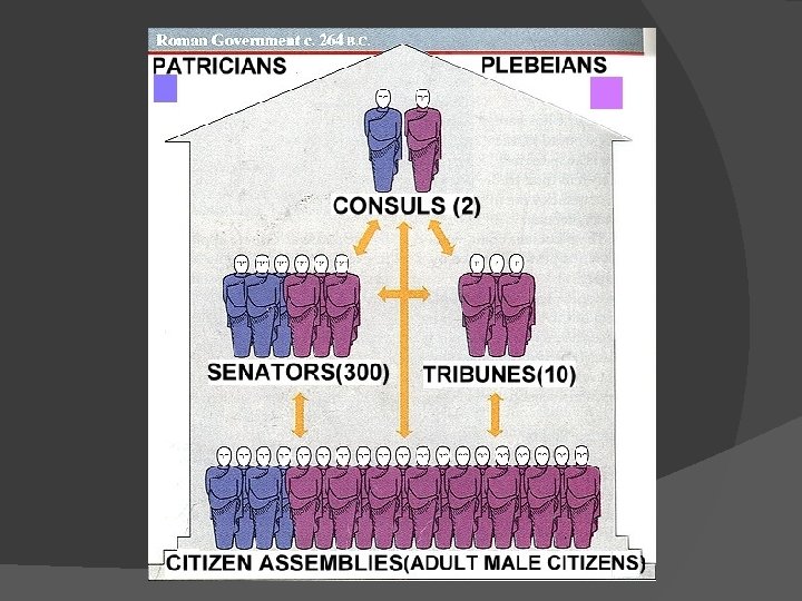 Geography & Early Republic 6. People of Rome a. b. c. Rome was divided up into several different groups who struggled for power Patricians: wealthy landowners who held most of the power Plebeians: the common farmers, artisans, and merchants; majority of pop.