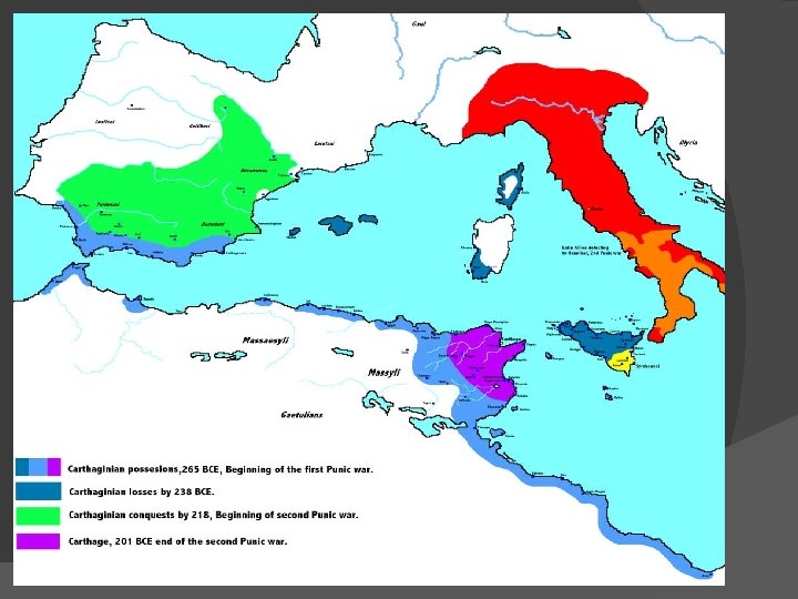Geography & Early Republic 7. Roman Power Expands a. b. c. d. e. Steadily the Romans conquered the Italian Peninsula As Rome conquered lands, people were absorbed into their ever growing territory Some people were accepted as citizens, others simply became allies Rome went to war against Carthage; a powerful city in North Africa The struggle became known as the Punic Wars (264 -146 B. C. )