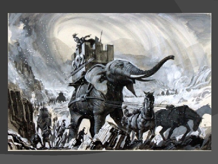 Geography & Early Republic Carthage was led by a brilliant general named Hannibal g. Hannibal assembled an army of 50, 000 infantry, 9, 000 cavalry, and 60 elephants intent on capturing Rome h. He led his troops up through Spain and crossed the Alps into Italy f.