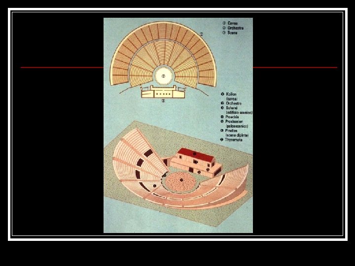 Continued… n n Theatre existed only for men: both as performers and audience: women not permitted to attend until about 400 BC. Audiences large: some theatres could hold over 17, 000.