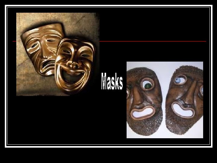 Continued… n Euripides: n n Aristophanes: n n Separates action from chorus More concerned with human relationships. Medea: woman’s husband cheats on her: to get revenge, she sacrifices her two sons. Main author of Greek comedy. Masks used to show emotions n (where masks of comedy and tragedy come from)