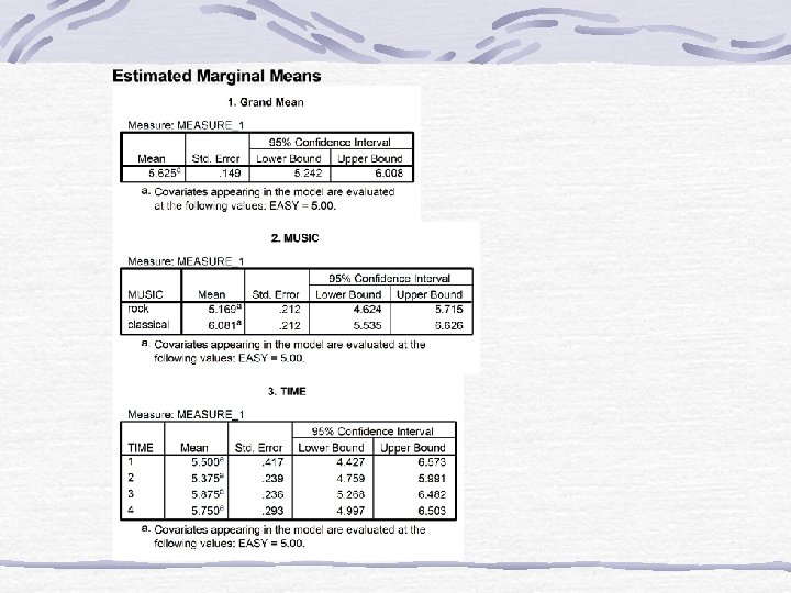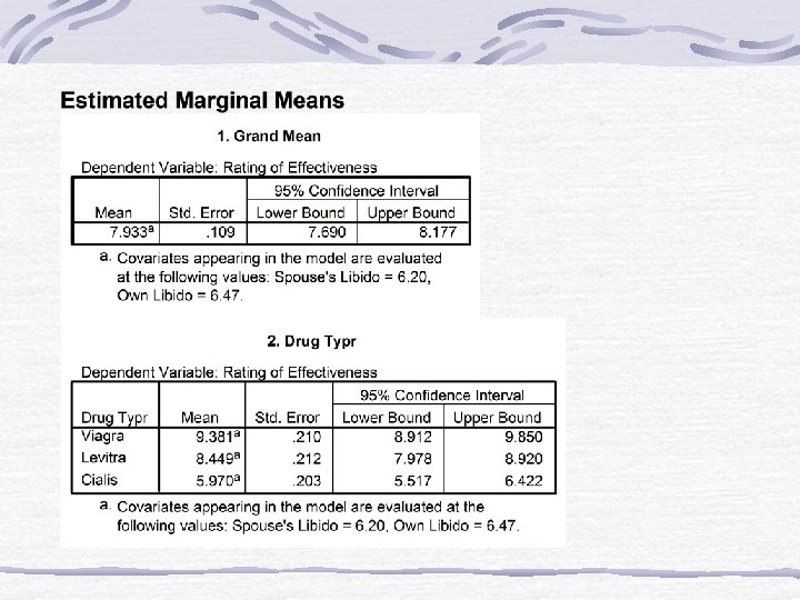Specific Comparisons • For BG analyses Fcomp is used • Comparisons are done on adjusted means