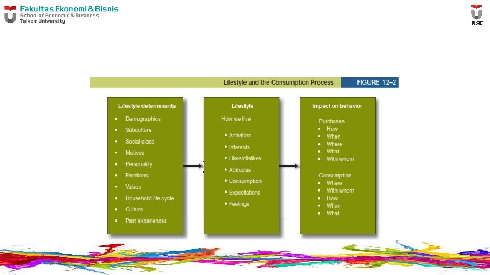 Individu dan rumah tangga keduanya memiliki gaya hidup. Meskipun gaya hidup rumah tangga sebagian ditentukan oleh gaya hidup individu anggota rumah tangga, sebaliknya juga benar. gaya hidup yang diinginkan individu memengaruhi kebutuhan dan keinginan mereka dan dengan demikian mereka perilaku pembelian dan penggunaan. Gaya hidup yang diinginkan menentukan banyak keputusan konsumsi seseorang, yang pada gilirannya memperkuat atau mengubah gaya hidup orang itu. Pemasar dapat menggunakan gaya hidup untuk segmen dan target spesifik pasar.