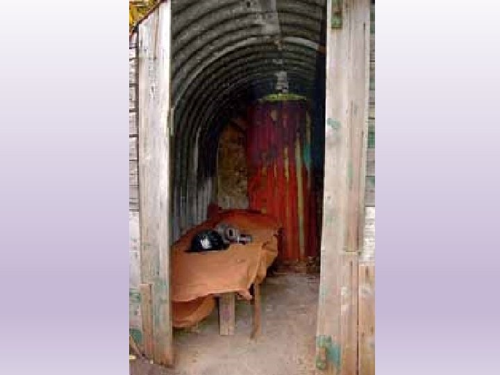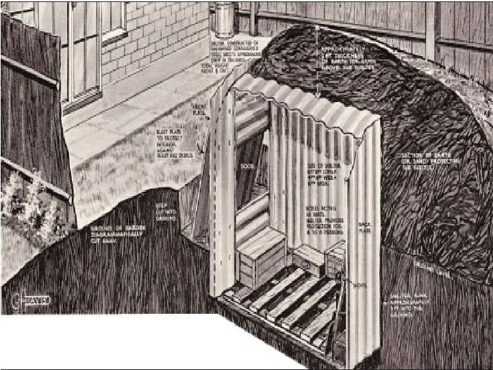 A small drainage sump was often incorporated in the floor to collect rainwater seeping into the shelter.