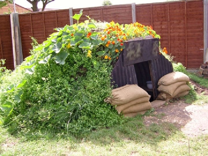 The earth banks could be planted with vegetables and flowers, that at times could be quite an appealing sight and in this way would become the subject of competitions of the best-planted shelter among householders in the neighbourhood.