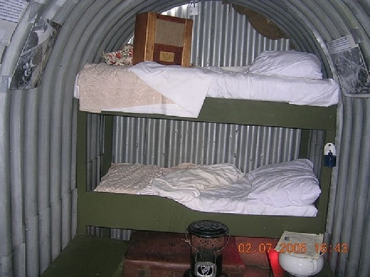 Anderson shelters were dark and damp and people were reluctant to use them at night. In low-lying areas they tended to flood and sleeping was difficult as they did not keep out the sound of the bombings.