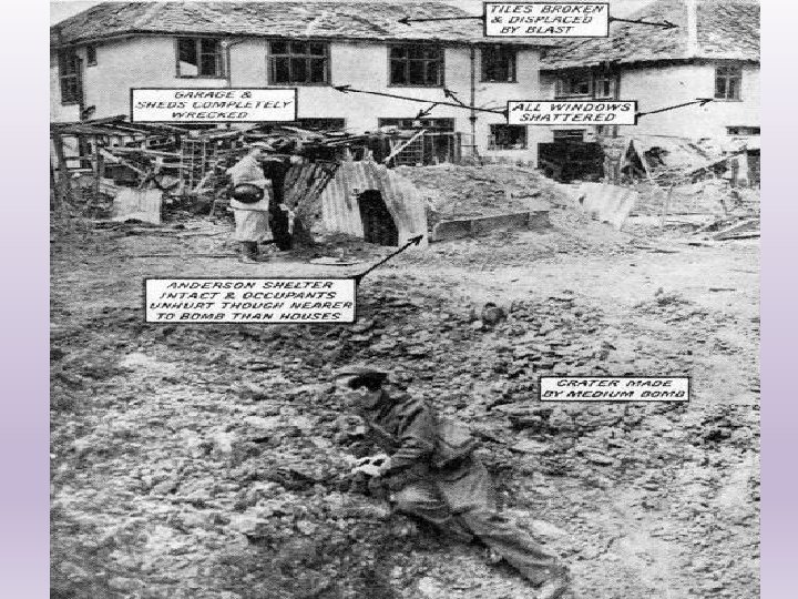 The Anderson shelters performed well under blast and ground shock, because they could absorb a great deal of energy without falling apart. This was in marked contrast to other trench shelters which used concrete for the sides and roof, which were unstable when disturbed by the effects of an explosion