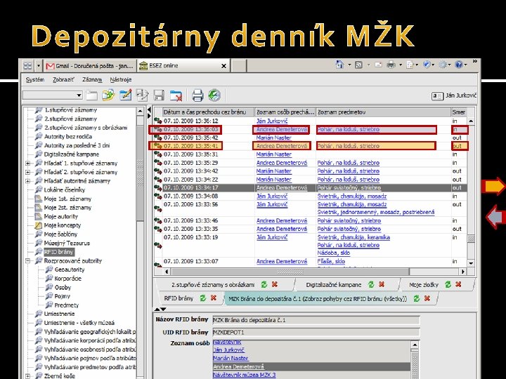 RFID (angl. Radio Frequency Identification) - označuje technológie využívajúce elektromagnetické signály na automatickú identifikáciu objektov. Objekty je možné identifikovať bez potreby priamej viditeľnosti, bez nasmerovania zo vzdialenosti niekoľkých metrov. Rýchle vyhľadanie v množstve uloženého dokumentačného materiálu - stačí vyslať signál čítacím zariadením a okamžite sa vráti hľadaný údaj o predmete (jeho uloženie). Spoľahlivá identifikácia predmetu - na displeji sa zobrazia údaje, ktoré obsahuje čip - môže to byť evidenčné číslo, prírastkové číslo, názov predmetu. . . čokoľvek, čo si zvolíme, aby čip prevzal zo záznamu o predmete z ESEZ 4 G a identifikačné zobrazenie. To nám pomôže jednoznačne určiť predmet. Automatické sledovanie pohybu predmetu - každé opustenie a vrátenie predmetu do depozitára je zaznamenávané v ESEZ 4 G - v údajoch o pohybe predmetu. Automatické sledovanie pohybu osôb v depozitári - registrácia každého oprávneného vstupu a signalizácia neoprávneného vstupu (oprávnený je s tagom kurátora či kustóda, neoprávnený bez tagu). Technológia RFID neplní prvotnú funkciu ochrany.