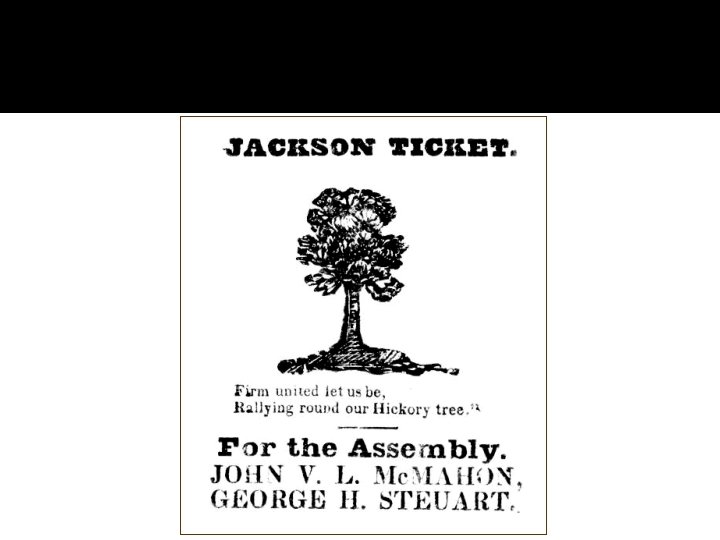 Election of 1828 Andrew Jackson vs. John Q. Adams Bitter Campaign Personal Attacks ▪ Adams attacks Jackson’s wife and mother ▪ Wife, Rachel – accused of being bigamist; dies shortly after reading a castigating election pamphlet about husband ▪ Mother, Elizabeth – “COMMON PROSTITUTE” ▪ Jackson attacks Adams ▪ Gambling in the White House ▪ Procurer for the Russian Czar http: //www. pbs. org/kcet/andrewjackson/video/