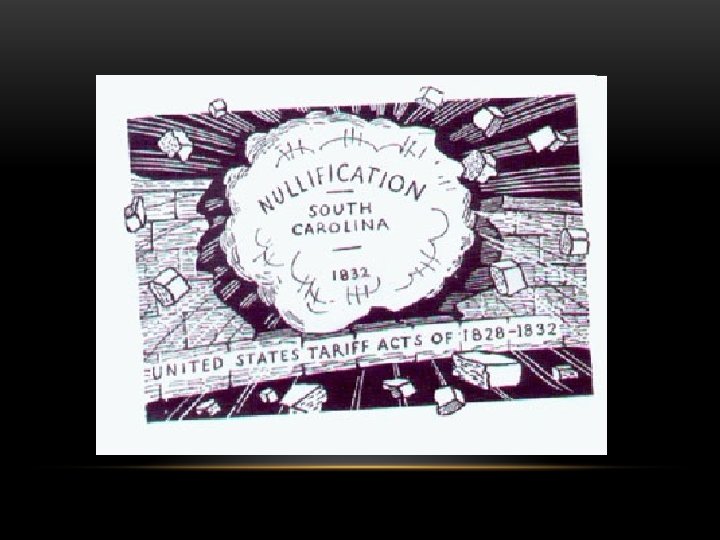 THE NULLIFICATION CRISIS • Supported states rights but not disunion • Jackson continues policy of protective tariffs by supporting the 1828 Tariff of Abominations • South Carolina (and South) is unhappy, declares tariff unconstitutional • John C. Calhoun proposes nullification