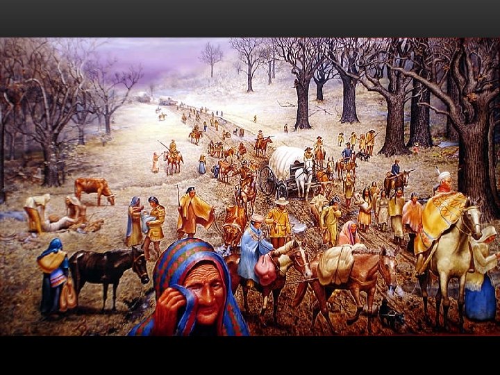 JACKSON AND AMERICAN INDIANS • Essentially, Jackson ignores the Supreme Court and ignores the checks and balances that are supposed to limit his power • Extreme racism at the time; many supported Jackson and he was never held accountable • VP, then President Martin Van Buren enacts the Trail of Tears because of the Indian Removal Act • 15, 000 Cherokees removed; 4, 000+ deaths