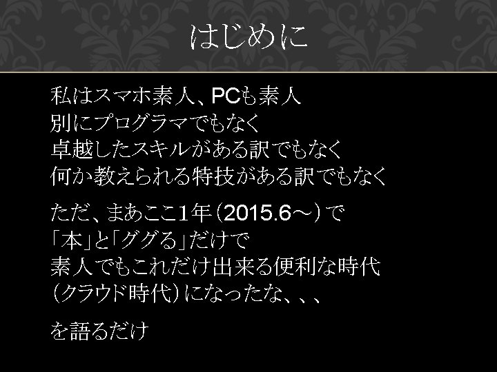 目次2 【13】Android. Studio & Webview on Web. Page 【14】 Word. Press Backup-Files & Documents 【15】 Sakura pocket 【16】 UWSC 【17】 UWSC & FTP cmd file on DOS 【18】 Laravel 5 & Composer 【19】 Laravel 5 sample. controller. php 【20 】Visual Studio Community 2015 【21 】Laravel 5 Homestead Setting, , but sorry NG 【22 】Java Schedule 【23 】PHP+My. SQL PRG basic 【24 】SQLite