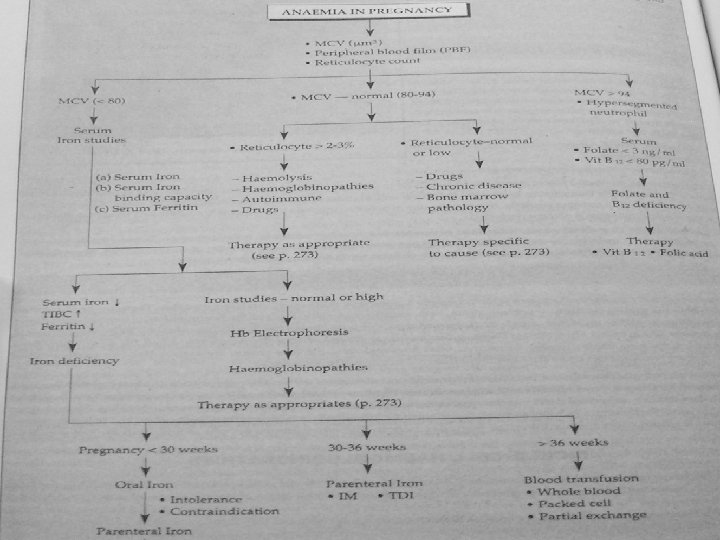 Defination of Anemia during Preg. l Hemoglobin below 11 gm/dl in 1 st and 3 rd trimester and below 10. 5 gm/dl in second trimester.