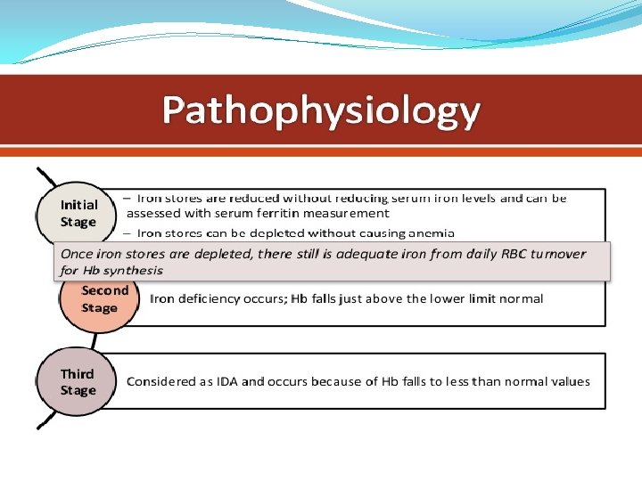 Etiological Factors q. Impaired iron absorption : Ø Achlorhydria. ØPlummer- Vinson syndrome. ØGastric surgery. Ø Ciliac dis. Ø pica. q Increased iron demands or loss. > chronic bleeding ( GIT , menses , urinary , etc. ) infancy Ø pregnancy. Ø lactation. Ø q Nutritional. q Idiopathic