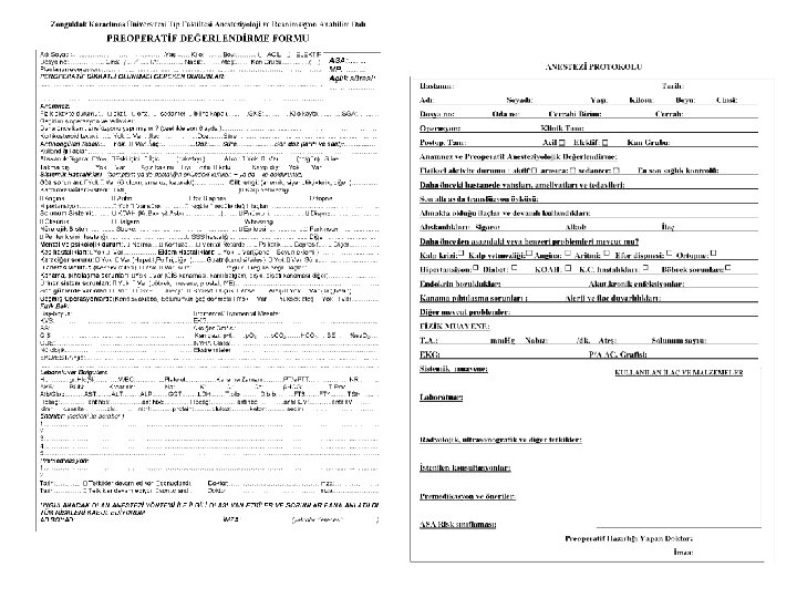 Anestezide hasta güvenliği • Preanestezik vizit – Hastanın daha önce anestezi alıp almadığını, – Anestezi aldıysa daha önce sorun yaşanıp yaşanmadığını kayıt eder, – Tam ve ayrıntılı fizik bakı – Hastanın tıbbi ve psikolojik açıdan anesteziye tam olarak hazır hale gelmesi – Anestezi açısından risklerin tespiti – Cerrahiye özgü risklerin, olası kanama miktarının belirlenmesi