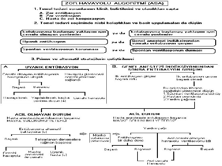 Anestezide hasta güvenliği • Normalde; – Solutma ventilasyon önce maske ile, – Devamında endotrakeal entübasyon • Zor entübasyon – Hasta güvenliği açısından büyük bir risk • Preanestezik vizit sırasında bazı ölçümler • Zor entübasyon için gerekli hazırlığın yapılması (Algoritma – Ekipman)